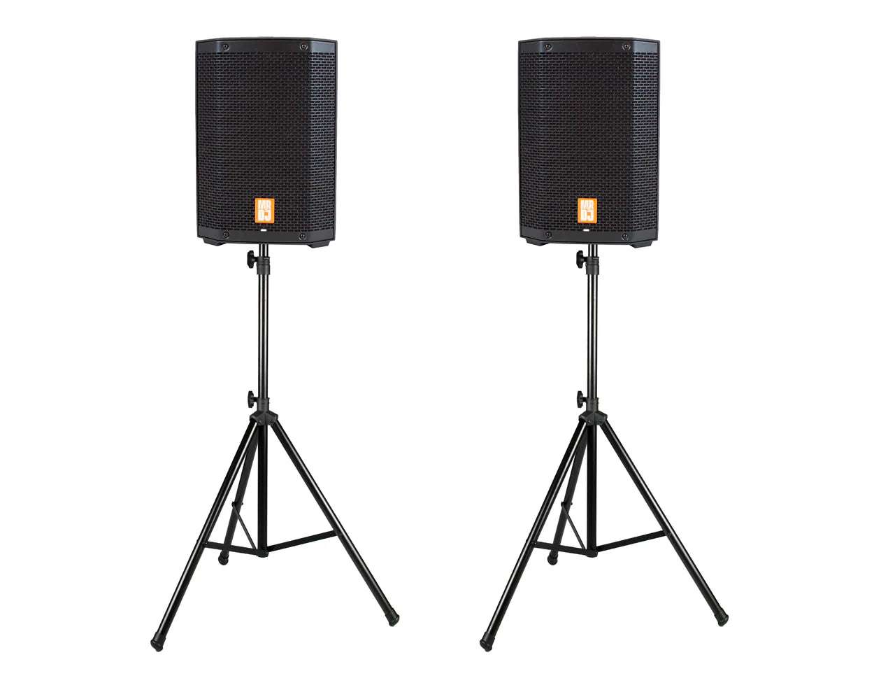 2 MR DJ PROX8PA 2500 Watts Max P.M.P.O., 300 Watts RMS PRO Battery Powered Active Portable PA Speaker All-in-One Array System with Guitar Input, Mid-Morph EQ, Channel Priority + MR DJ SS350 Speaker Stand